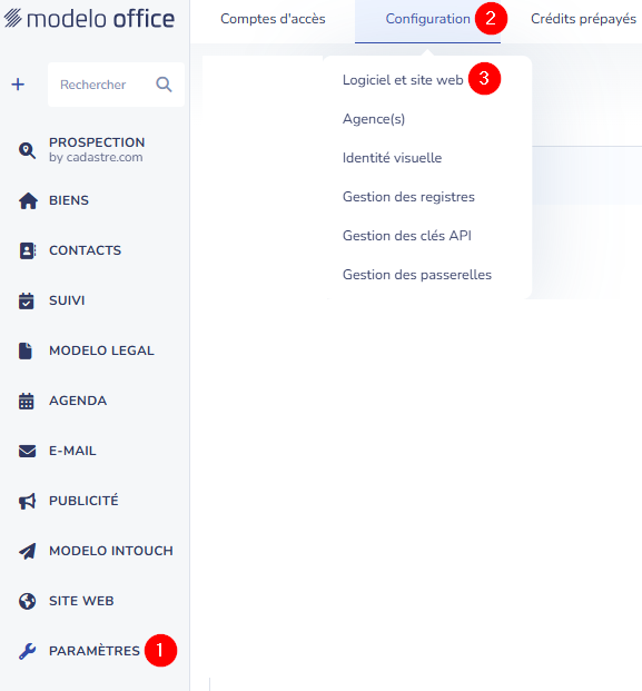 1. Rendez-vous dans l'onglet PARAMÈTRES > Configuration > Logiciel et site web :