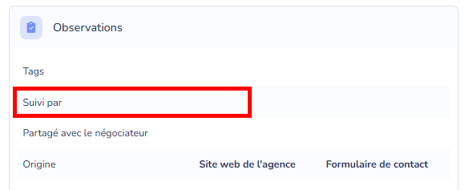 💡 Si le champ "Suivi par" est vide, ce sont les coordonnées de l'agence qui seront envoyées par défaut.