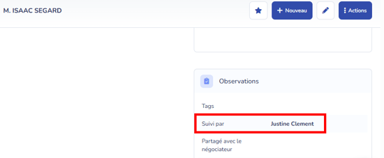 Pour savoir qui à la charge de l'acquéreur, vous pouvez le voir dans la fiche contact dans le bloc "Observations", champ "Suivi par".