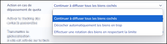 3. Dans la rubrique "Multidiffusion", rendez-vous sur le champ intitulé "Action en cas de dépassement de quota", et choisissez quelle limite vous souhaitez mettre en place :