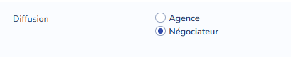 - La diffusion est configurée par coordonnées négociateurs : les contacts entrants sont envoyés aux coordonnées renseignées dans le profil du négociateur associé sur la fiche du bien diffusé.