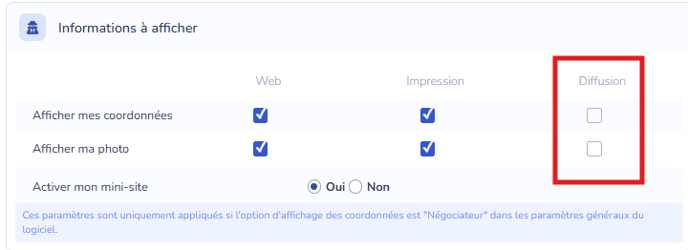 💡 Par défaut, la diffusion est configurée sur Agence.
