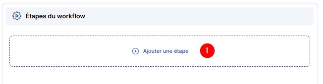 Sur la droite de la création du workflow, cliquer sur "Ajouter une étape" pour autant d'étape que vous souhaitez mettre en place dans votre workflow [1] :