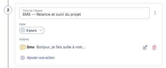 - Action : envoyer un SMS de suivi
