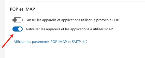 5. Activez le paramètre "Autoriser les appareils et les applications à utiliser IMAP"