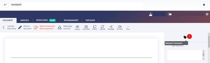 Sur votre droite, vous trouverez une étiquette permettant de modifier manuellement l’état du document (2).