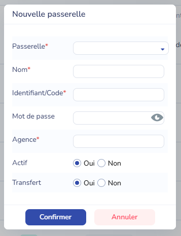 Mot de passe : Ne sera nécessaire que pour certaines passerelles et il vous sera communiqué par le portail concerné (laissez le champ vide si aucun mot de passe ne vous est communiqué).