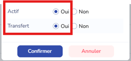 Avant toute chose, assurez-vous que les champs « Actif » et « Transfert » sont bien positionnés sur « OUI ».