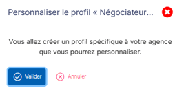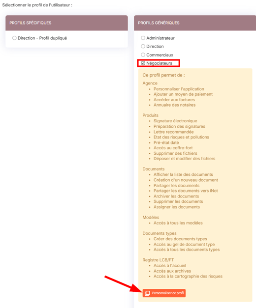 2. Cliquez sur le négociateur concerné et dans la fenêtre, sur la droite dans l'encart "Profils génériques" , sélectionné celui configuré. Vous pourrez ensuite faire "Personnaliser ce profil" :