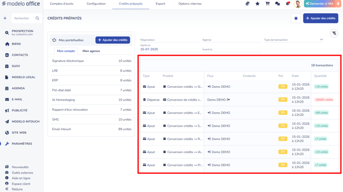Modelo Office vous propose un système de paiement à la consommation sous forme de crédits prépayés. Vous ne payez donc que ce que vous utilisez. Découvrez comment retrouver le détail des crédits utilisés.