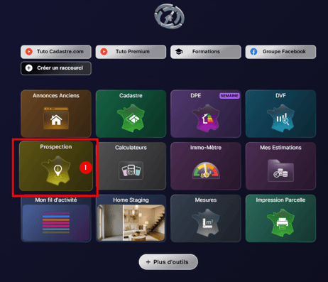 Rendez-vous dans l’onglet Prospection (Cadastre.com).