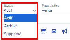 2. Au niveau du filtre "Statut", sélectionnez "Supprimé".