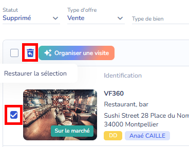 1. Accéder à la liste du type concerné : liste des biens, liste des contacts, liste des affaires.